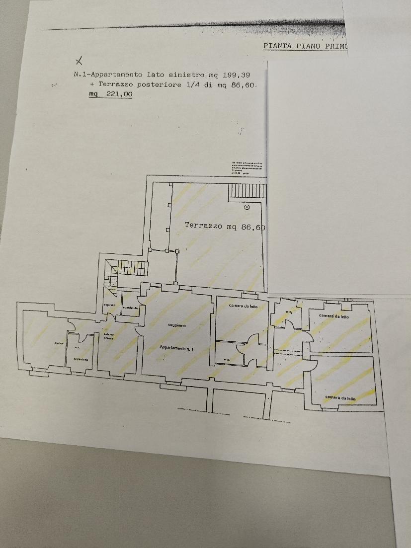 Proponiamo in vendita nella città di Benevento in pieno centro storico su Corso Garibaldi, posto al primo piano, appartamento di 221 mq circa, facente parte di un palazzo storico piu' ampio, anche di interesse delle Belle Arti. L'accesso ad esso e' attraverso un'ampia corte storica, molto bella che porta con una rampa di scale alla soluzione. Essa comprende anche 90 mq circa di terrazzo. La soluzione si presta anche ad essere frazionata in due appartamenti. alleghiamo un foto planimetria dell'intero appartamento di 221 mq e alleghiamo una seconda foto di planimetria che rappresenta l'appartamento suddiviso in due appartamenti divisi. Prezzo interessante, e trattabile. Info Agenzia
